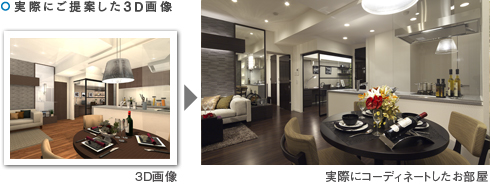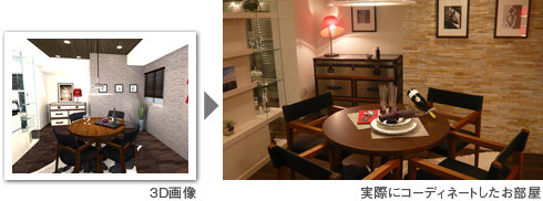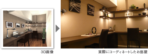 コーディネートはもちろん造作家具も立体で表現することで、実際のお部屋に近いものが